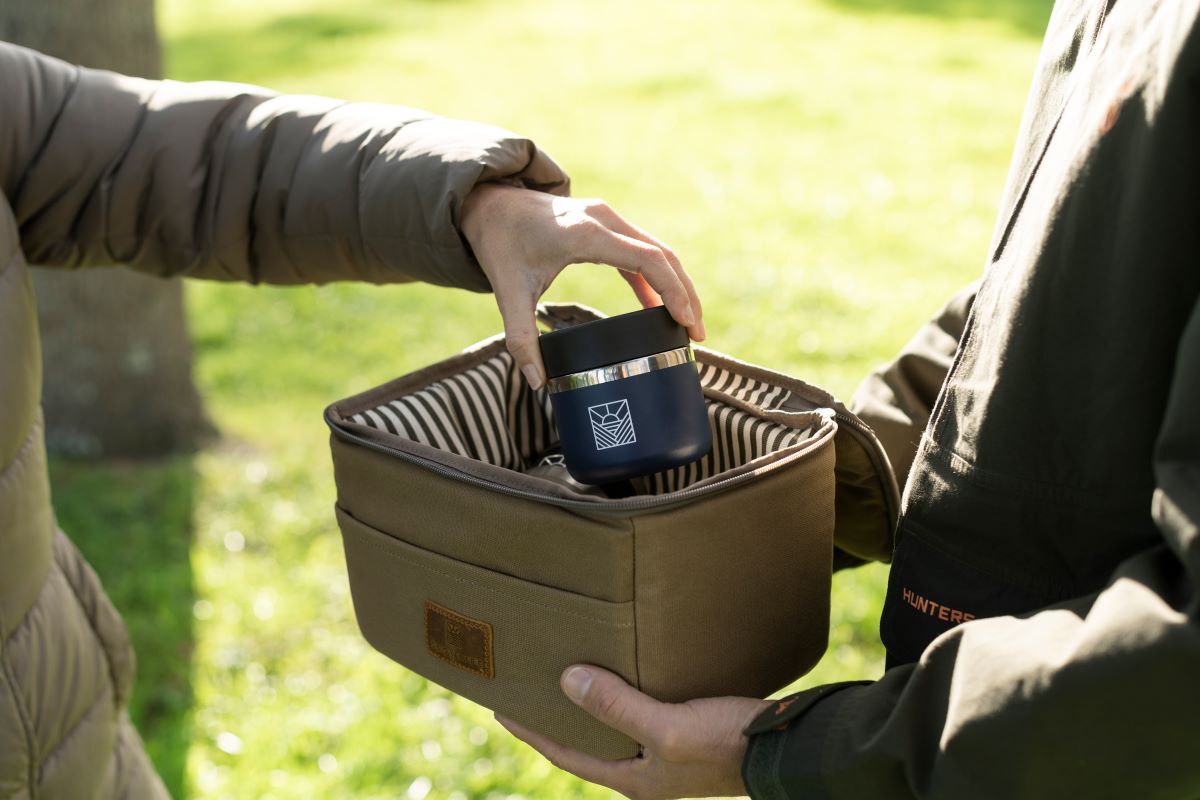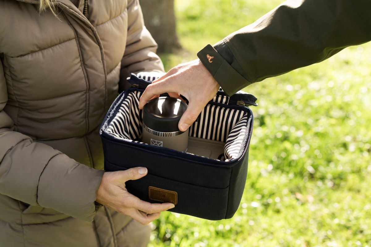 Take your lunch game up a level with our Lunch Bag, the perfect place for your packed lunch (or liquid lunch). Take it to work, school, on picnics or outings. Fitting 6 cans or a variety of substantial snacks, our lunch bag keeps your cold food and drinks cool for up to 24 hours. Featuring our signature striped interior and leather details, and available in navy and olive.